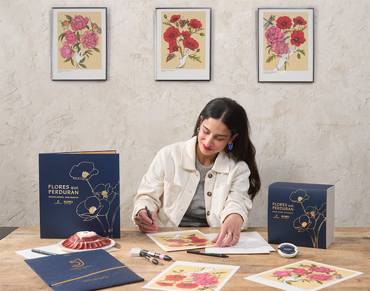 Hay regalos que se marchitan y otros que permanecen aunque pasen los años. Este 14 de febrero, Cinco Jotas y Riofrío, junto a la artista Ana Jarén, celebran San Valentín con Flores que perduran, un pack exclusivo de edición limitada pensado para compartir y disfrutar en pareja. La propuesta incluye un loncheado de jamón de bellota 100 % ibérico Cinco Jotas (80g), una lata de caviar ecológico Naccarii de Riofrío (30 g) y una lámina floral de edición limitada creada para la ocasión por Ana Jarén.