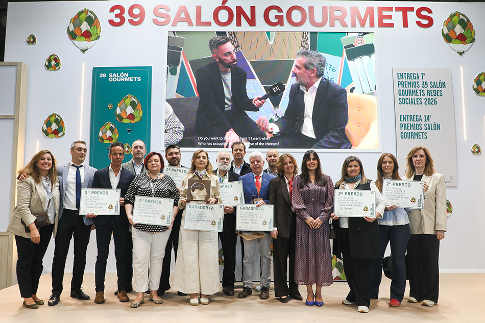 La última de las jornadas comenzó premiando a expositores y productos, los primeros los 7º Premios 39º Salón Gourmets Redes Sociales. Sabor a Málaga se proclamó como #Mistandfavorito2026 y el café de Azafrán de ESIR el #ProductoIncógnito2026. La ceremonia de entrega de premios continuó con los 14º Premios Salón Gourmets que este año estrenaba la categoría de mejor Producto Internacional otorgado a las chips de papas nativas peruanas en formato tubo de Tiyapui; el primer premio en la categoría Innovacion ha sido el Polvorón cremoso de cacao y grajeas de Lacasitos cubierto de chocolate con leche de La Estepeña; el mejor packaging ha sido el de Turrón Aire de Almendra Amarga Albert Adriá de Torrons Vicens y por último, el mejor producto ecológico elegido por el Jurado ha sido el vinagre elaborado a partir del vino Piedra Luenga Pedro Ximénez de Bodegas Robles.