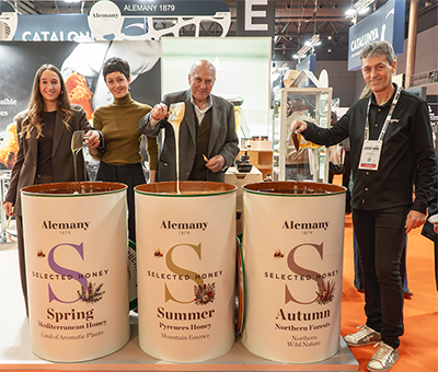 Torrons i Mel Alemany presentó durante la feria dos novedades. Por un lado, la nueva Gama Luxe, una colección de mieles elaboradas con la colaboración de firmas gastronómicas de referencia compuesta por: Miel y Trufa, en alianza con Laumont; Miel y Té Matcha, con Tea Shop; Miel y Azafrán, con Safrà del Montsec y Miel y Chile, la propuesta más atrevida con Specials Foods. La otra novedad es la Miel con Vitamina B12, la primera miel del mercado con alto contenido en este nutriente esencial.