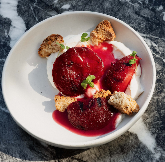 La carta está pensada para compartir, con múltiples opciones frescas y de temporada que destacan por su autenticidad y respeto por los ingredientes locales: las bolitas de gambas (51,2km), las croquetas de remolacha y queso Blau Ceretà (28km) y Pasta Paccheri con stracciatella, pesto de almendra marcona casero, tomate semiseco y espinacas baby (7km). Recetas que reflejan un compromiso con el entorno y un guiño a la tradición.